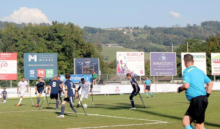 La Ligue des Nations de football pour amputés (division B) s’est déroulée du 8 au 10 septembre à Annecy et Rumilly. Quatre équipes se sont affrontées, la France, l’Italie, l’Irlande et l’Allemagne, sous le soleil haut-savoyard. Cette compétition, organisée par l’Equipe de France de Football pour Amputés (EFFA) et la Fédération Européenne (EAFF), en partenariat avec le Conseil départemental de Haute- Savoie, a permis de mettre en lumière la pratique sportive pour tous et de changer le regard sur le handicap. Samedi après-midi, après l’Italie contre l’Irlande, l’équipe de France a affronté l’Allemagne sur la pelouse du stade des Grangettes. Les Français ont remporté le match haut «le pied» avec une victoire 4-0. Beaucoup d’émotions et d’admiration se sont fait ressentir durant ces deux matches commentés par François Daviet, vice-président de l’EFFA, où les athlètes ont performé sur une jambe, deux béquilles et une bonne dose de détermination. Le public était au rendez-vous pour soutenir la France, aux côtés d’élus locaux et départementaux. C’est au Parc des Sports d’Annecy que se sont déroulés les derniers matches le dimanche, où l’Italie a fini vainqueur, suivie de l’Irlande, la France et l’Allemagne.