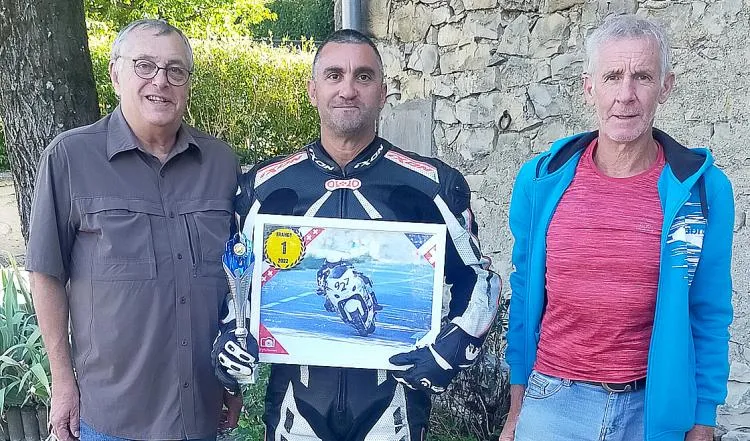 Christian VERMELLE, maire de Clermont, lui a remis ses trophées, en présence de Bernard REVILLON, maire de Frangy et des organisateurs de l’évènement. Stéphane MOREAU courait sur une moto Suzuki Hayabusa 1340 cm3.