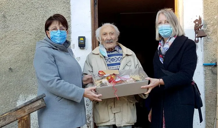 Fabienne Duliège 1ère adjointe et vice présidente du CCAS et Martine Maison adjointe et membre du CCAS sont allées lui souhaiter un joyeux anniversaire et lui offrir un panier garni au nom du conseil municipal et du CCAS.