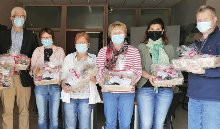 Peut-être avez-vous croisé les bénévoles de la commission sociales ou des élus, les bras chargés parcourant les rues du village… Ce sont eux qui ont eu le plaisir de livrer à domicile (ou en Ehpad) les paniers garnis remplis de douceurs variées et locales. Au-delà du plaisir gustatif, l’objectif était d’apporter un peu de bonheur et de bonne humeur à ceux qui ne pourront pas, cette année, se rencontrer pour passer ensemble une bonne et belle journée.