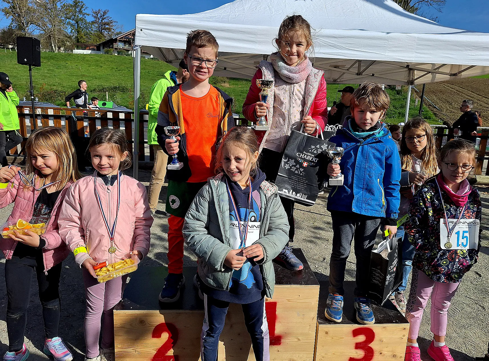 Environ 70 enfants des écoles des communes accueillant ce 4ème trail panoramic couraient également un trail, et chacun a reçu une récompense, un lot de paquets de Chocapik et un livre.