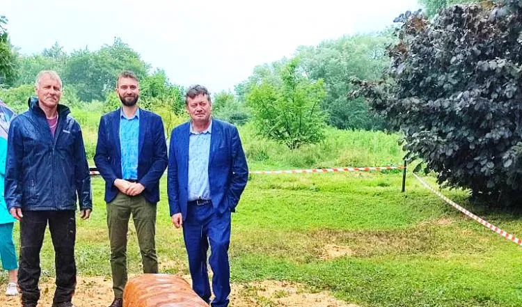 Il aura fallu un jour et demi, pour sculpter à la tronçonneuse cette chenille en bois de cèdre, de 4m et de 1 tonne, taillée dans un fus de 200kg, «symbole de croissance et de métamorphose», ponctue Pierre-Louis Balthazard, et qui fera le bonheur des enfants. Patrice Lesage, décore donc pour la seconde fois en dix ans, le «Jardin Vagabond». Originaire de Lozère, ce sculpteur a également réalisé la sculpture féminine du Parc de Verdure «Réflexion», qui depuis a été coupée et replantée près de la Rotonde. Le cèdre dans lequel la chenille a été réalisée, a été réservé au tout début du mandat, et provient d’Aix-les-Bains. Cro-co le Triton prend sa retraite près de la mare, qui va être également rénovée en matière d’étanchéité. Une autre sculpture «Germination «réalisée en corten, orne également le «Jardin Vagabond» qui a été créé en 2008, suite à l’Agenda 21, pour faire barrage à un projet immobilier qui prévoyait de faire 80 bungalows sur le terrain. Il comprend 5 hectares de biodiversité soumis à zéro pesticide depuis ses débuts, et un millier d’essences différentes. 90% de la nappe phréatique aixoise se trouve en-dessous. Le sol n’est pas adapté à l’éco pâturage, du fait de sa spécificité. «Le Rotary» a également financé en partie des ruches, qui sont exploitées par un apiculteur aixois, Mr Bertamel, anciennement membre de l’association, et qui ont produit 38kg de miel l’an passé. A l’heure actuelle, il n’y a plus de plantation au «Jardin Vagabond». Aujourd’hui le jardin possède le label «Promenade Confort», avec la proximité du «Zander», et sert de lieu thérapeutique aux patients qui ont besoin de rééducation respiratoire. Un cheminement pour les personnes à mobilité réduite, a également été tracé. En projet, une sculpture de barque, devrait venir remplacer la véritable qui a été vandalisée, d’ici trois ou quatre ans.