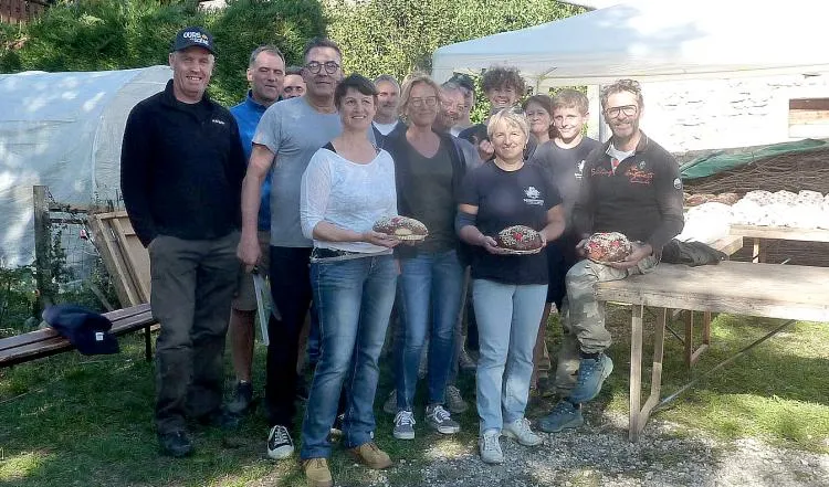 L’association «d’une pierre à l’autre», présidée par Josette Arséguel, a organisé samedi une vente de St Genix cuits dans le four à bois de Louis Allard et Hervé Clerc. Vendredi après-midi les bénévoles ont préparé la pâte avec l’aide d’un pâtissier Fred Peyrin dans la salle des fêtes. Samedi à partir de 4h du matin, le façonnage des gâteaux a commencé. Ils ont été mis à la cuisson vers 8h, quarante Saint Genix par fournée. La dernière cuisson a été faite vers 18h. Trois cent trente gâteaux ont été vendus en un rien de temps. Les bénéfices serviront à la restauration ou à l’entretien du patrimoine du village.