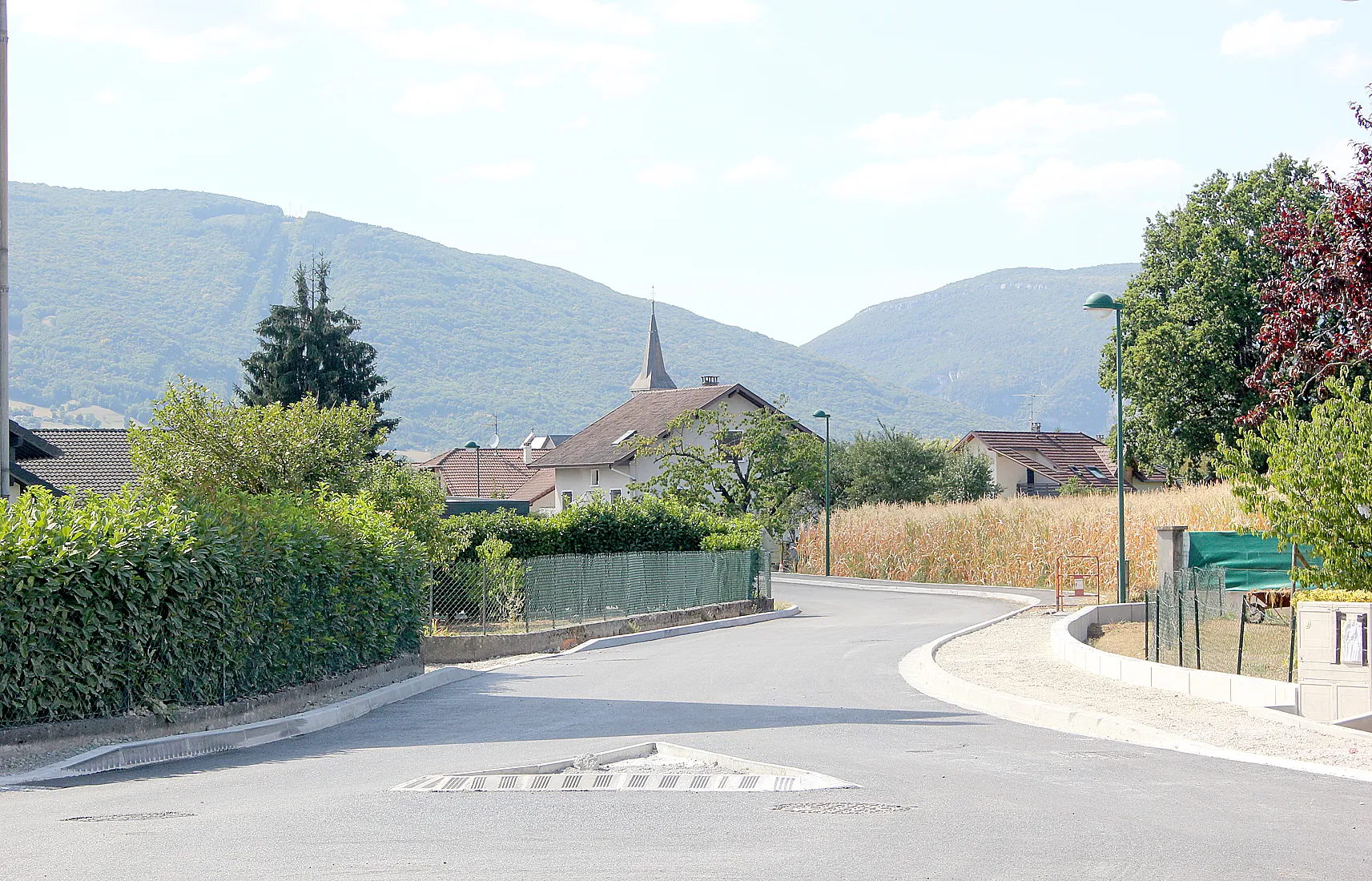 Concernant la voirie, le revêtement des voies de circulation a été entièrement refait et des trottoirs sécurisés avec bordures ont été créés pour sécuriser les piétons, ce qui a également permis de réduire la largeur de la route afin de ralentir la circulation. Le petit giratoire au croisement de la route des Combettes a également été réaménagé. Mercredi 27 juillet, une visite de fin de chantier était organisée, en présence de Patrice Derrien, premier adjoint au maire de la commune et Jean-Pierre Lacombe, vice-président en charge de l’eau et l’assainissement à la Communauté de Communes Rumilly Terre de Savoie. Les derniers enrobés de voirie venaient d’être réalisés, seuls les enrobés de trottoirs et quelques finitions restent encore à faire. Le cheminement piéton sécurisé est de 550 mètres route de Verlioz et de 150 mètres route sur les Marais.