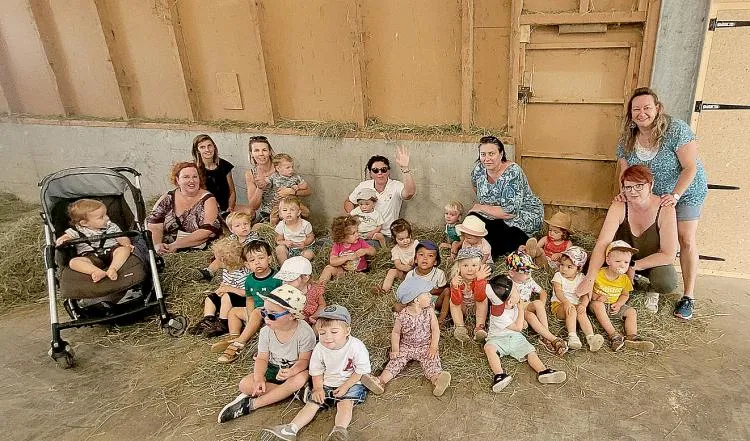 Mardi dernier, les assistantes maternelles des Pétoles Créatives ont effectué leur dernière sortie de l’année scolaire avec la visite de la ferme pédagogique des oursons à Saint-Ours. Hervé Clerc, un des responsables de la ferme, a accueilli toute la petite troupe. Dans un premier temps, il leur a fait découvrir les poules et les lapins. Les enfants enchantés ont pu leur faire un câlin et nourrir la basse-cour en leur jetant du grain. Ensuite il les a emmenés dans les bâtiments agricoles situés un peu plus bas où se trouvaient les vaches, les veaux en cours de sevrage et les bébés. Les enfants, chacun leur tour, sont rentrés dans leur petit habitat pour les caresser. Certains leur ont même donné le biberon. Puis ce fut la pause déjeuner avec dégustation de la tomme de Saint-Ours. Hervé s’est improvisé cuisinier en fabriquant des pizzas qu’il a cuites au feu de bois. Il a demandé à trois assistantes maternelles ainsi qu’à quelques enfants (les plus grands) de l’aider à étaler la pâte et la garnir ensuite. Tout le monde s’installa à l’ombre de grands arbres pour les savourer. Mais le repas se poursuivait avec un pique-nique préparé par les «nounous» qu’elles ont partagé avec Hervé Clerc. Cette sortie fut offerte par l’association aux adhérentes et aux enfants en garde.