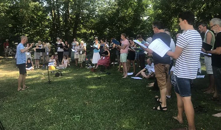 Le concert d’ouverture du Festival des Nuits d’Eté a cette année une résonance de fraternité. En effet, Voix et Chemins d’Europe (VoCE) est un projet artistique initié en 2014, destiné à rassembler plusieurs chœurs européens autour de différentes œuvres vocales, dans le but de commémorer ensemble, le centenaire de la 1ère guerre mondiale. Ainsi, un collectif éphémère a réuni 9 chœurs venus de Belgique, Pologne, Allemagne, Bosnie-Herzégovine, Roumanie, et France lors de plusieurs évènements à travers les grandes villes européennes.
